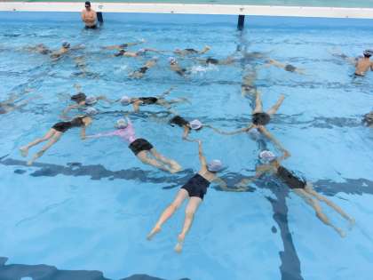 6月は天候に恵まれず、3年生しか入っていなかったプールに