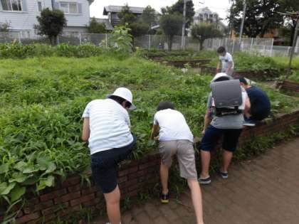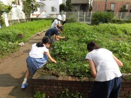 八幡ファームでは、5年生がさつまいも畑を管理しています。