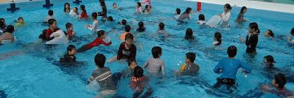 本校では、4年生が毎年この着衣泳をすることにしています。