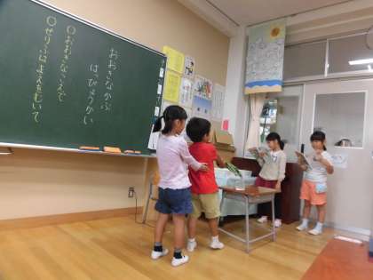 国語「おおきなかぶ」の学習で、劇の発表会をしました。