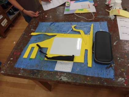 板を切って、やすって、色やニスを塗って、穴を開けて…。