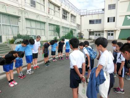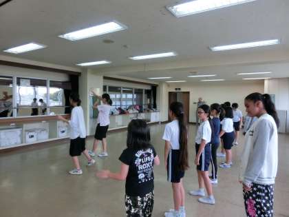 この日は中学生の「先輩」に囲まれて練習を体験します。
