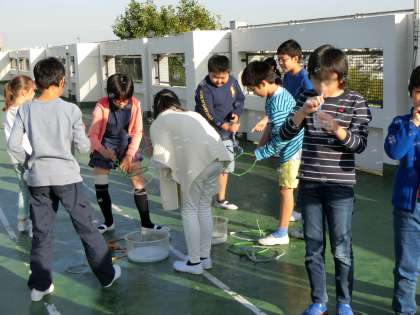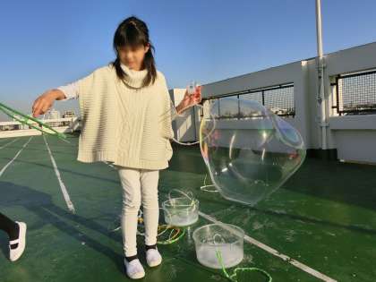 さわやかな秋空の元、屋上でシャボン玉を飛ばしました。