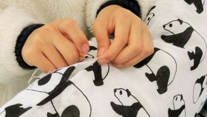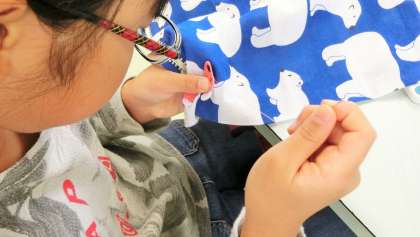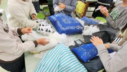 綿を詰めて、かがり縫いか、なみ縫いで返し口を閉じます。