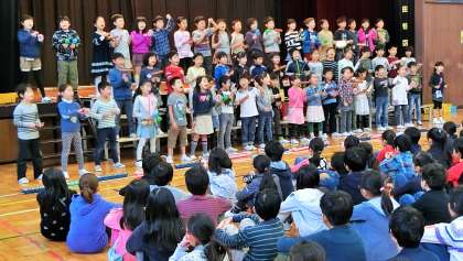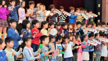歌や鍵盤ハーモニカ、打楽器で「かぼちゃ」「こぎつね」の