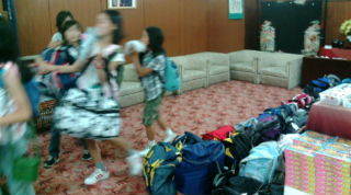 ホテル高照に到着。開園式を行って、みんな部屋に入って避難訓練を行いました。この後、予定より1時間早く行動します。ゆとりある日程になりました。