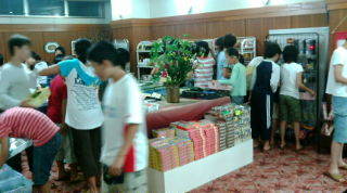 23日最後の報告です。お買い物タイム。「これはお母さんに」「お兄ちゃんにはこれでいいかな?」とか、家族を思い浮かべながら、買っている姿が微笑ましく思えました。この後は、部屋でそれぞれお楽しみタイム。9時消灯です。お休みなさい。