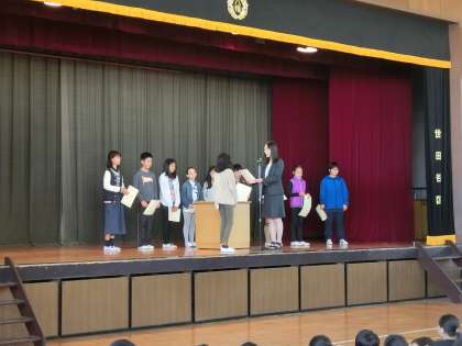 表彰は、5年生の「税に関する絵はがきコンクール」と