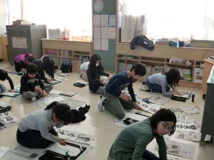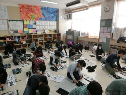 穂先の動きを意識して文字を書きます。手本は3学期に