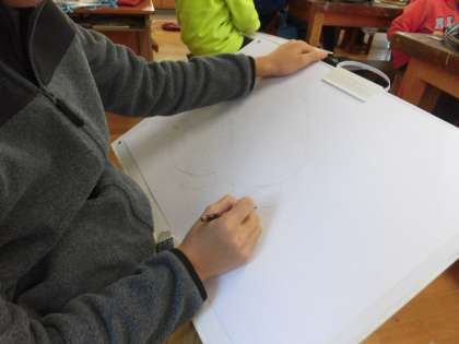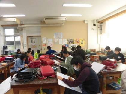 構図をじっくり決めた後、鉛筆で形をとっていきます。