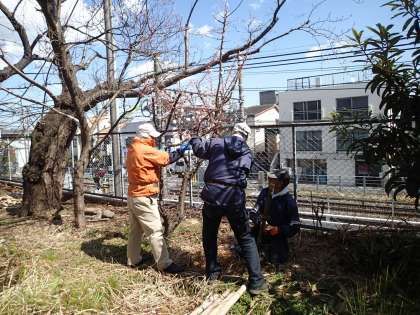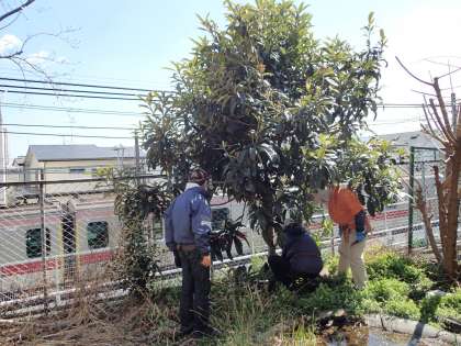 今回はビオトープの杏子と梅の木を、東京農業大学