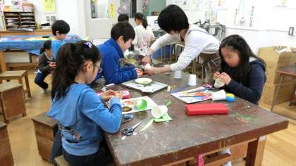 美術科の教員と一緒に「何が飛ぶとおもしろいかな?」