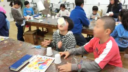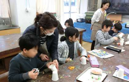 の授業をしました。紙コップ2個と輪ゴムを材料にして