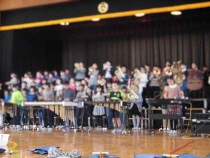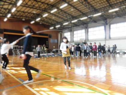 体育館に移動して、長なわ跳びと合奏・合唱を披露しました。