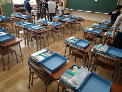 新6年生が教職員と一緒に、入学式や新年度の準備をしました。
