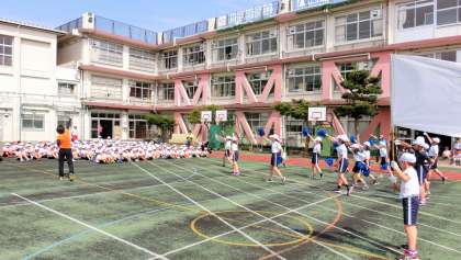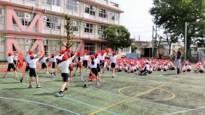 2回目の全体練習は、応援合戦と八幡音頭です。