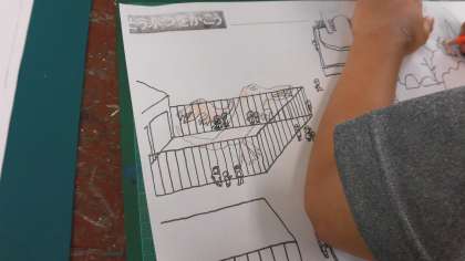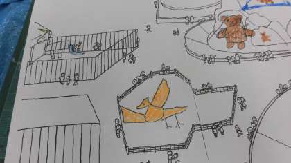 好きな動物を描き加えて、自分だけの動物園を作りました。