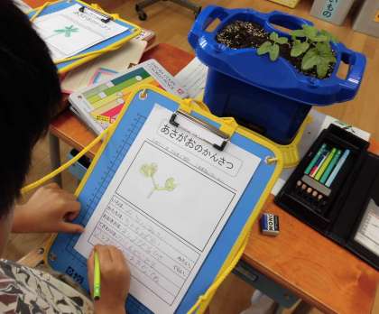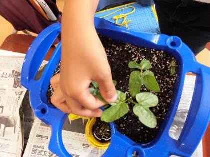 「私のアサガオは、もう4つもはっぱが、出てきてるんだよ」
