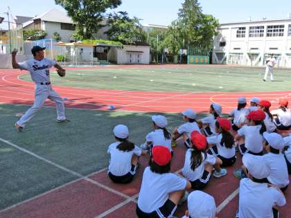 河端龍コーチが、体力テストを前に、正しい投げ方を