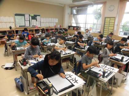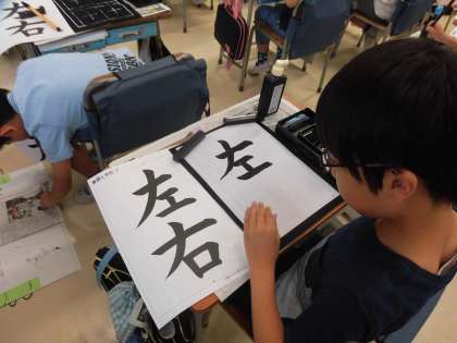 書き順と姿勢に気を付けて「左右」を丁寧に書きました。