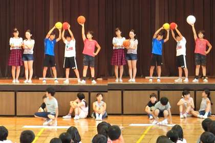 幕が閉まると、集会委員のポーズや小道具などが変わります。