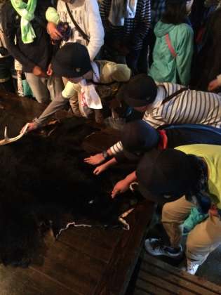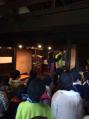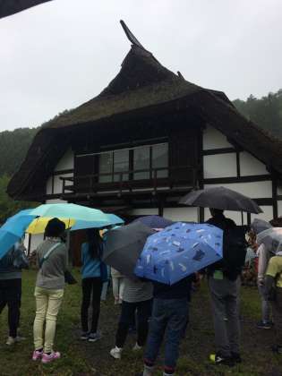 ふじやまビレジの近くにある茅葺き屋根の古民家を見学し、