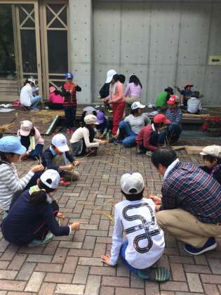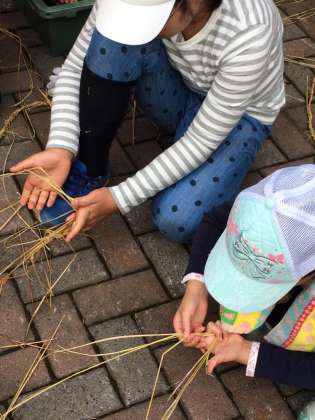 縄をないました。悪戦苦闘中。上手にできましたか?