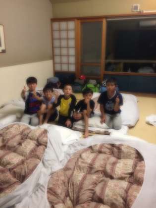 A7班の部屋は昨日も今日もきれいに整理整頓ができました。荷物もまとめて置いてあり、皆のお手本となりました。2日目の夜。消灯です。