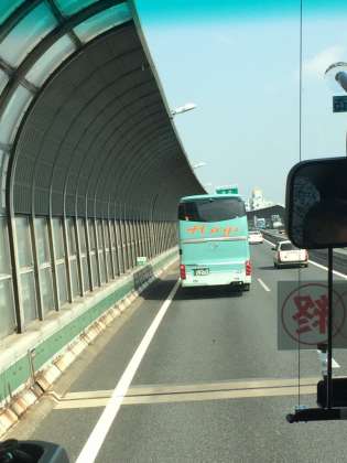 バスは、三芳パーキングエリアでトイレ休憩し、一路学校へ。子どもたちはビデオ観賞中。足元にはお土産のダイコンが?!
