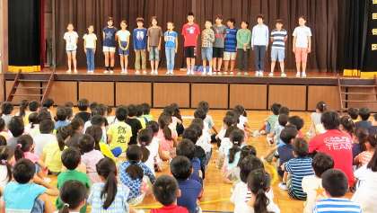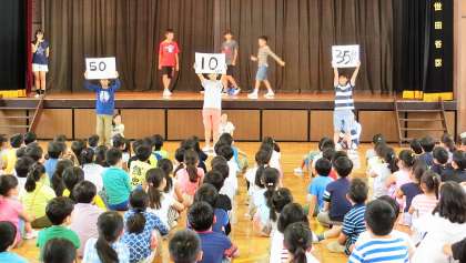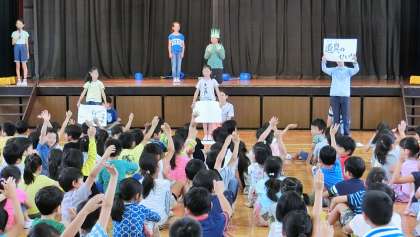 環境委員会の仕事を、劇とクイズで紹介しました。