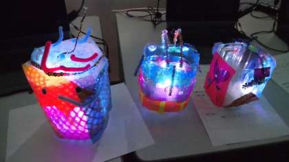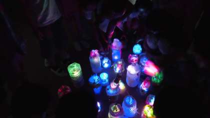 パソコンルームを暗くして行いました。みんなのライトを