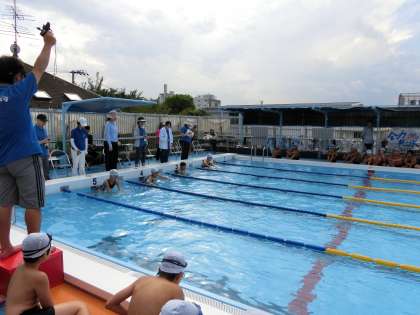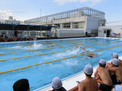 久しぶりの晴天に恵まれ、九品仏小学校で水泳記録会を