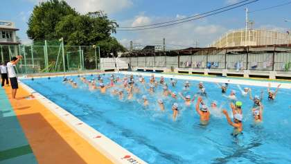リズム泳のあと、練習をしてから、検定に臨みました。