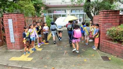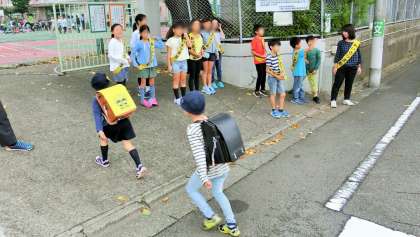 登校してくる人たちに、元気いっぱいに挨拶しました。