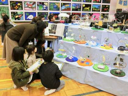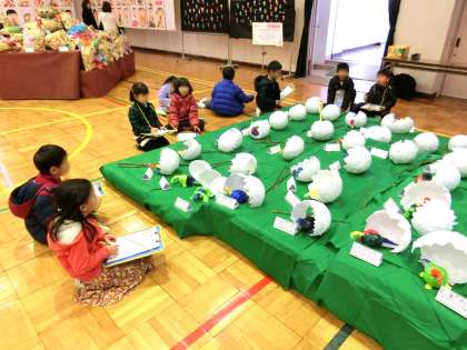 初めての展覧会。いつもと違う体育館の様子に驚きながら