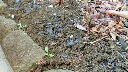 霜柱を見つけました。1年生は、持ち上げて観察したり
