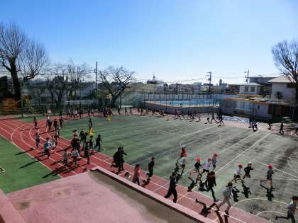 中休みの終わり10分を使って、全校児童が持久走を行います。