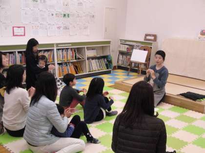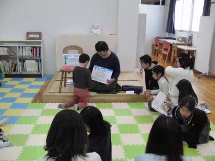 おはなし会の後には、保護者の方と絵本を読むなど、
