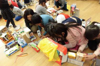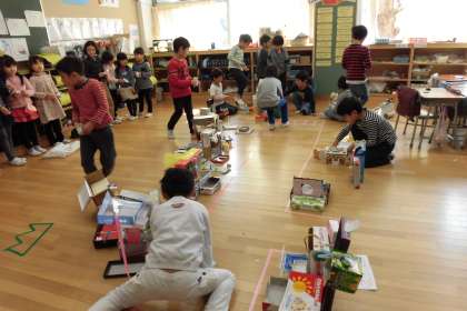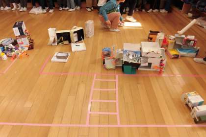 街づくりをしました。教室を街に見立てて、自分の好きな区画に