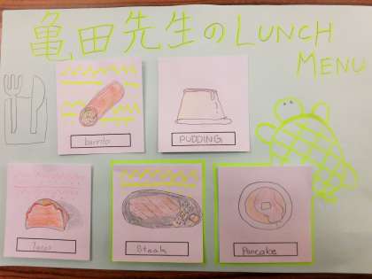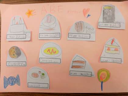 外国語活動で世界の料理を調べました。調べた料理をもとに