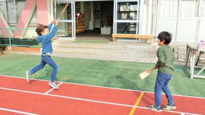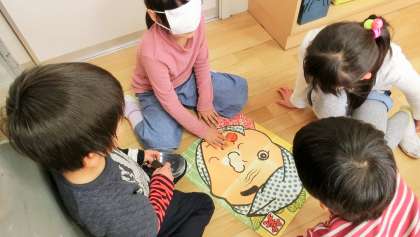 1月には凧揚げを行い、福笑い、羽根つき、こま、おはじき、