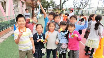 勝った人には、金メダルも用意しました。集会委員の児童は、