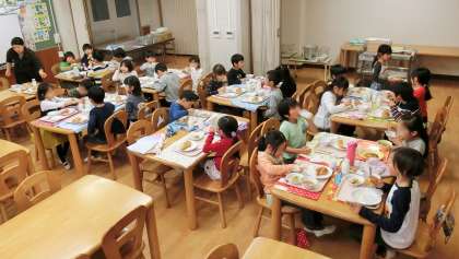 学期に1回程度、クラス単位で、ランチルームで給食を