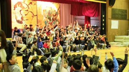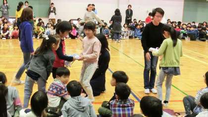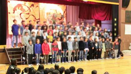 6年生は合唱を披露し、八幡小をきれいにしていって