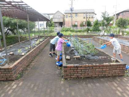 ヘチマや夏野菜を育てています。毎日水やりをがんばっています。