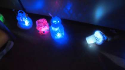 パソコンルームに行って、暗い部屋の中ライトをつけて鑑賞会をしました。