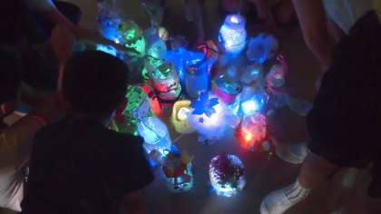 全員の作品が集まると光る街みたいだね、と子どもたちは喜んでいました。