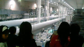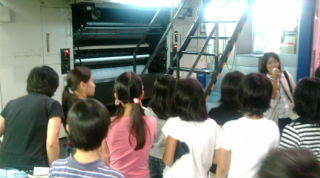 巨大な輪転機にビックリ!印刷された新聞が川のように流れています。