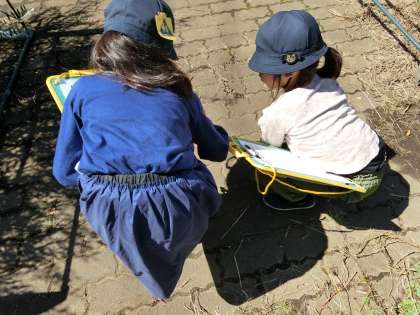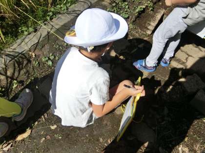 生活科で、八幡ファームに小さな生き物探しにいきました。