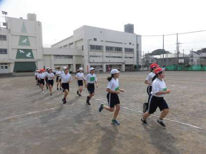 「最後まで力を落とさずに走り切れるかなあ。」とスタート地点でつぶやく子もいました。八幡小学校の校庭とはまた違った緊張感があったようです。